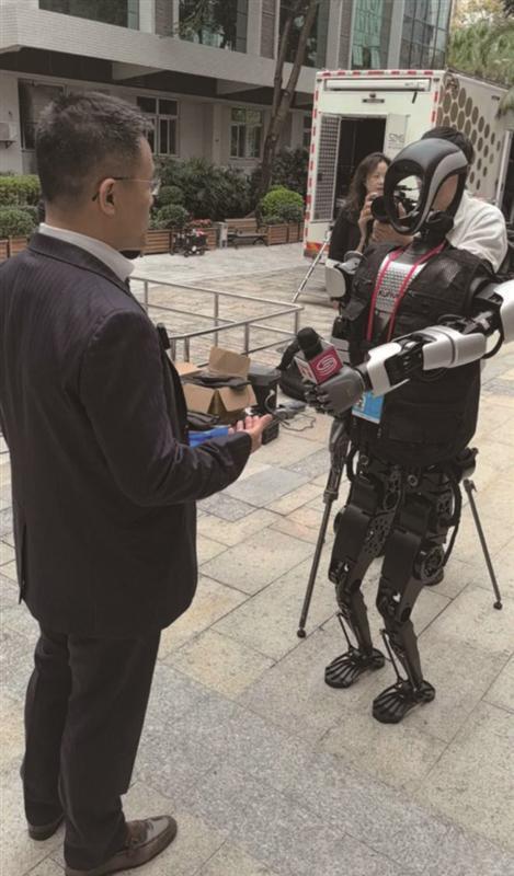 图为在深圳市两会现场采访的机器人“记者”夸父
